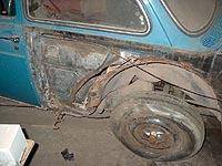 Hatte hier vielleicht der schon erwähnte VW- Mitarbeiter an diesen Autos auch gearbeitet? Die geschlachteten Autos waren 10 Jahre jünger als das Restaurierungsobjekt. Also stellt sich doch die Frage, oder vielleicht auch nicht, was ist dem guten Mann alles in den 10 Jahren passiert? Also wieder Flex raus und ab die Post.Irgendwann hatte ich dann auch den hinteren rechten Radlauf so einigermaßen fertig. Nachdem das Seitenteil auch eingeschweißt war, war ich mir auch sicher das ich den Rest das Fahrzeuges auch noch hinbekommen werde.