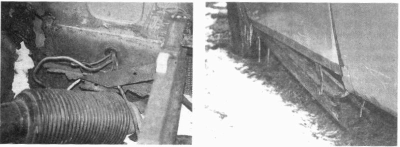 Von einer richtigen Fließbandproduktion konnte bei der Nullserie keine Rede sein. Anscheinend haben die Arbeiter im VW-Werk in den ersten Monaten so ziemlich alles verbaut, was ihnen in die Finger kam. Deshalb unterscheiden sich die für die Prospekte fotografierten Typ 3 auch in einigen Ausstattungsdetails. Manche hatten sogar ein weißes Lenkrad und ein weißes Lenkrohr. Mal gab es vier Regulatoren für die Frischluftzufuhr, dann wieder nur drei wie in der Serie. Mal sind Türpappen mit Kartentasche, dann wieder welche mit einer Klappe abgebildet. Auch der Handschuhfachverschluss ist auf einigen Abbildungen abschließbar. Angeblich wurde dieses Teil für das geplante, aber nur in wenigen Prototypen gebaute, Cabrio entwickelt. Im Teilekatalog taucht dieses Handschuhfachschloss nicht auf. Geschickte Retusche, oder gab es das alles wirklich? Nummer 54 kann uns zumindest einige Fragen beantworten, wirft aber auch neue auf und lässt vieles einfach im Dunklen. Viel ist nach all den Jahren nicht mehr von der einstmals golfblauen Limousine übriggeblieben. Die Fragmente des linken Schwellers schwingen frei am Kabelbaum, die Bodenbleche sind zum großen Teil weggerostet. Der Motor fehlt. Das ist besonders schade, weil gerade bei den ersten Modellen VW noch viel verändert hat, denn zunächst wollte der Flatfour im großen Bruder des kleinen Käfers überhaupt nicht laufen. Immer wieder wurden der Vergaser und die Zündung optimiert.