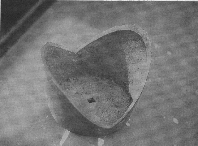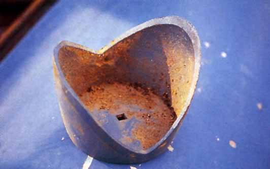 Im vorderen Kofferraum fand sich einer der originalen Katzenaugenhalter vom Heck. Er ist blau lackiert und hat kein Ablaufloch – deshalb rosteten die Dinger auch so gern durch. Erst später rüstete VW eine Ablaufmöglichkeit nach, damit der Stahl nicht rostete. Aber bei Nummer 54 ist der Halter aus Aluminiumguß.